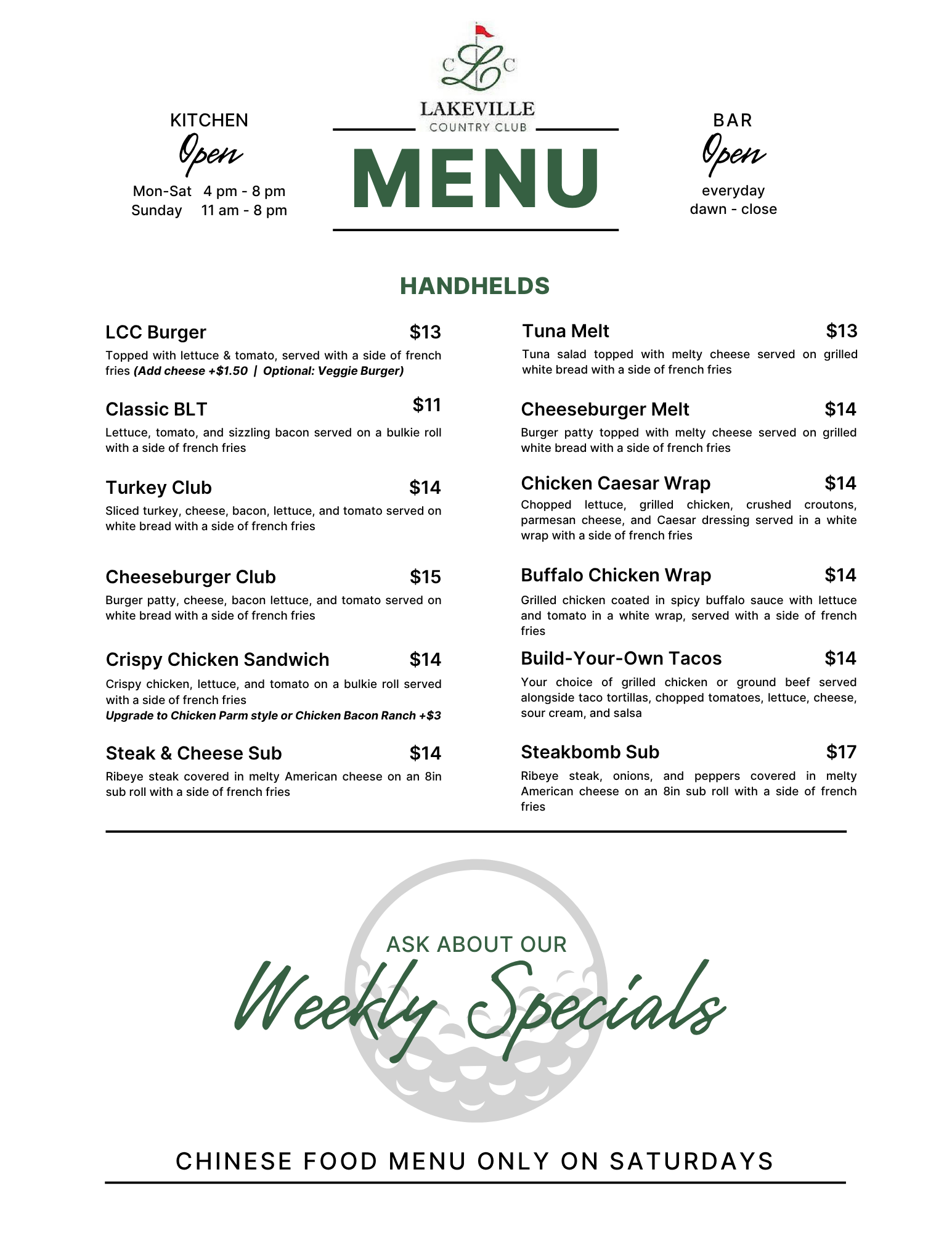 Order to-go by calling our clubhouse: 508-947-6630