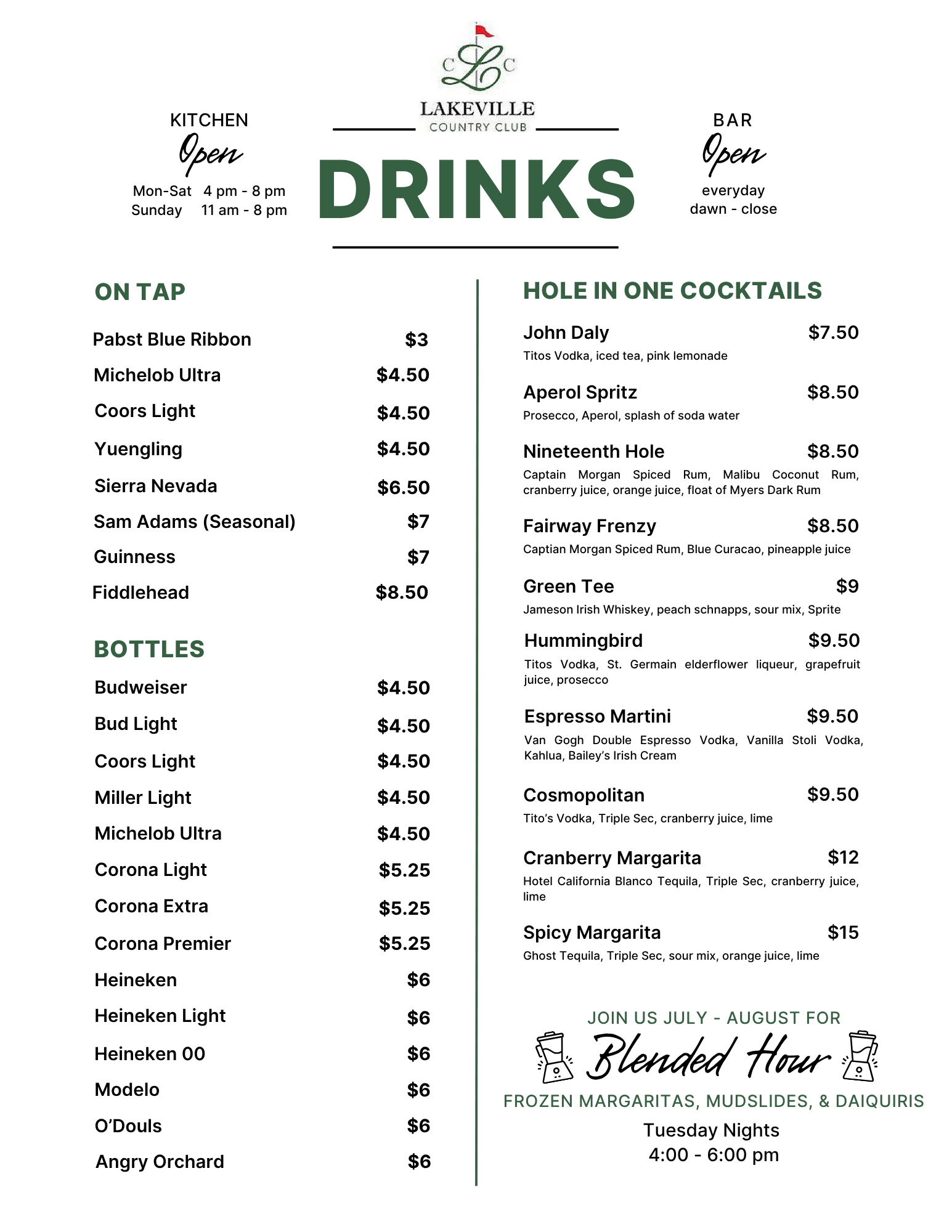 Visit our clubhouse for great food, delicious drinks, and exceptional bartenders!